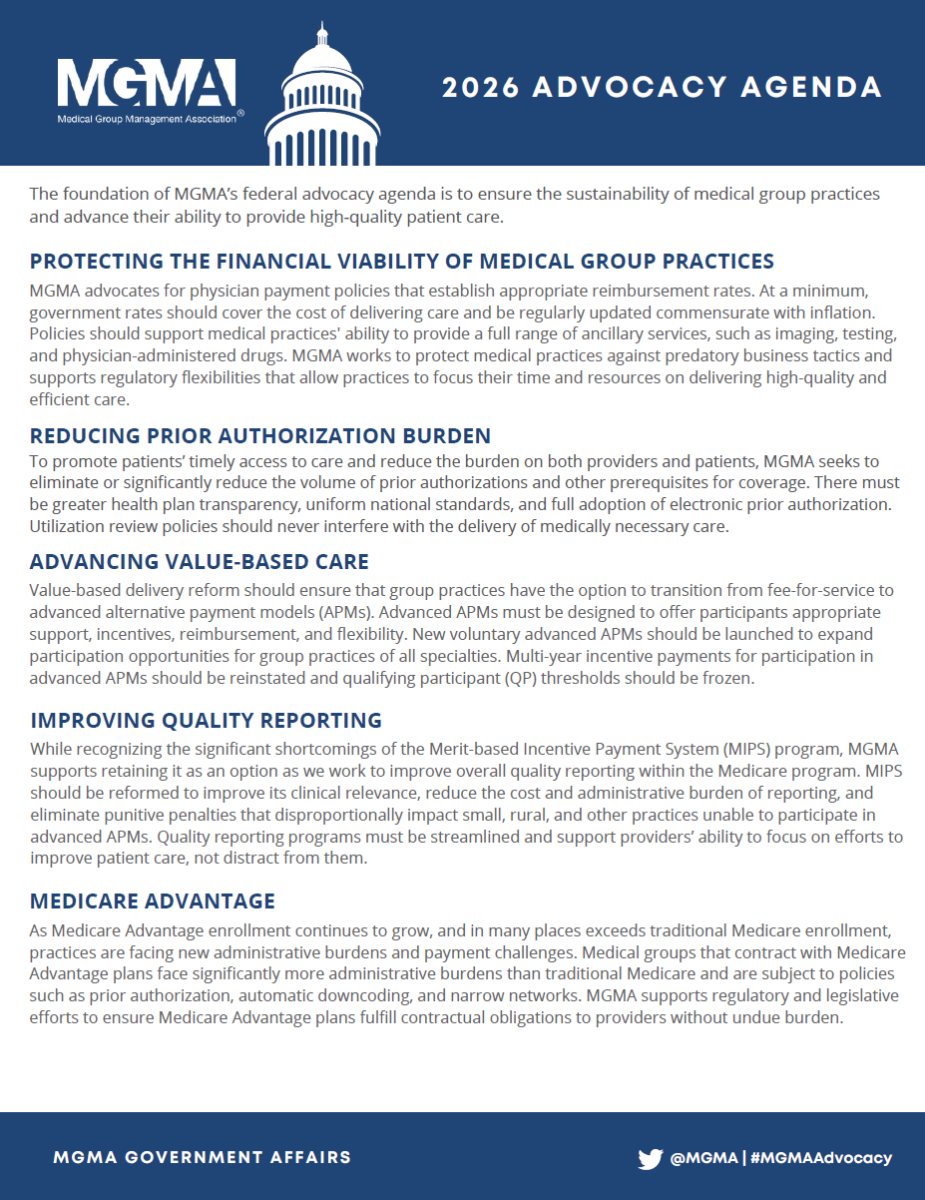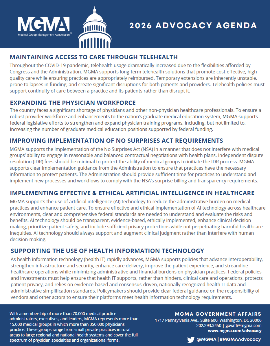 | In an effort to help facilitate Kansas MGMA's federal advocacy efforts., National MGMA-ACMPE has provided us with a link to their grassroots center. This link will send you directly to the MGMA Legislative Action Center, where Federal updates and grassroots messages are routinely updated by MGMA government affairs staff. |
